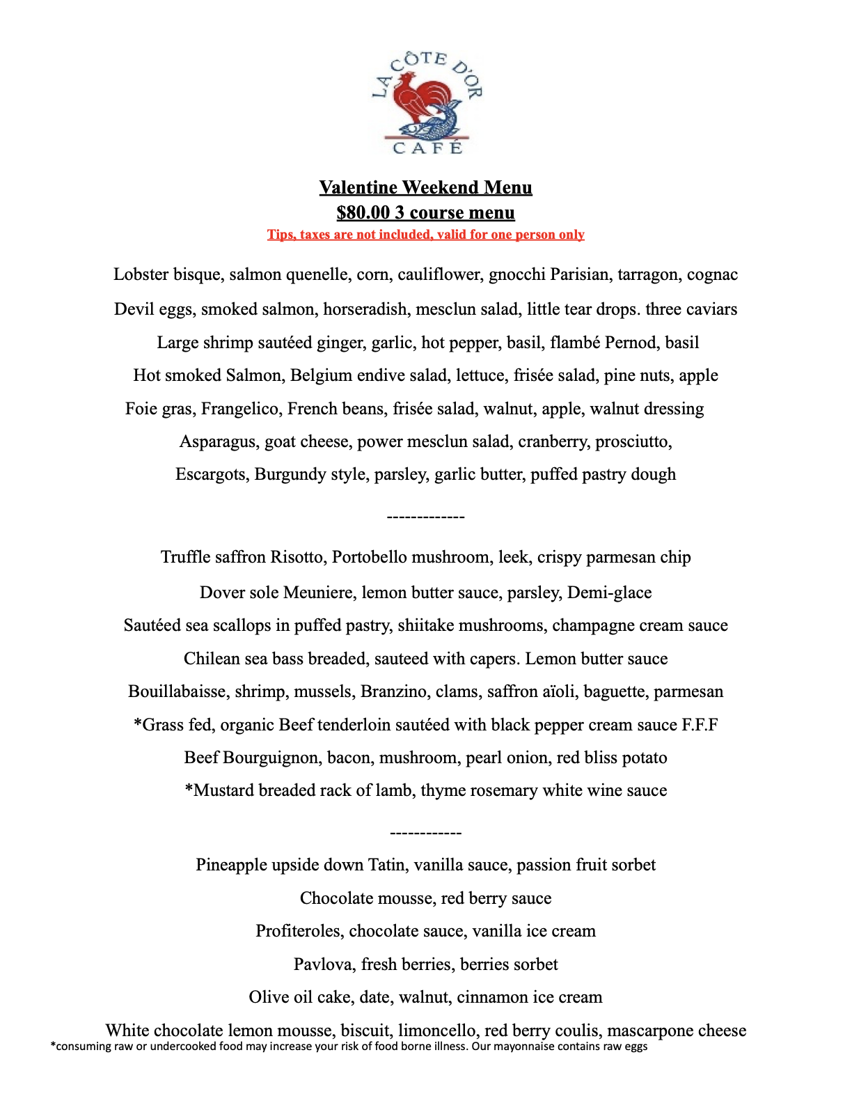 Valentine’s Weekend Dinner Menu
